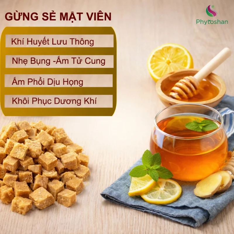 Gừng Viên Mật Ong Trà Gừng Viên Loại 1 Gừng Sẻ Sơn Kỳ Phytoshan SGM01